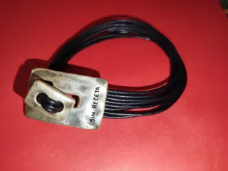 Pulsera de cuero negro con cierre de plata. - Diseño moderno y elegante. - Cierre con detalle de Sin Receta grabado. - Ideal para regalar.