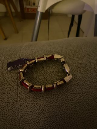 Pulsera a estrenar marca Ciclón hecha en cuero rojo y plata