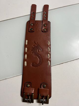 pulsera de cuero con dragon y doble hevilla , mira mas cositas en mi perfil