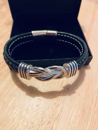 ♥️ ENVIO GRATIS en pedidos de más de 20 € (pregúntame y te lo activo por privado) Pulsera de hombre con diseño de nudo infinito, fabricada en cuero color negro trenzado con costuras blancas visibles, y acero inoxidable de alta calidad cuenta con un cierre magnético para un ajuste seguro. El nudo infinito, a veces llamado nudo de amor, es un símbolo náutico clásico que representa el amor eterno, la unidad o la amistad. Tamaño, 21 cm de largo Tamaño del nudo de acero, 4'3 x 1'5 cm.
