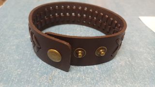 Pulsera de cuero para hombre en color marrón claro. En material zamak. Cierre imantado. Medida 20 mm de ancho y largo hace 21 cm. Nueva, pero con algún desgaste, como se ve en el cierre.