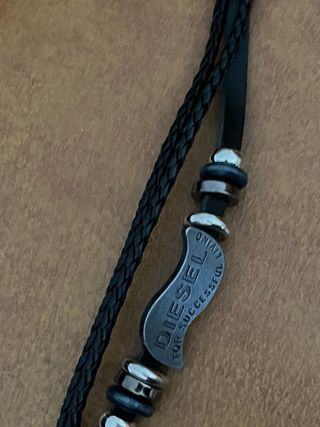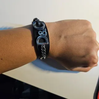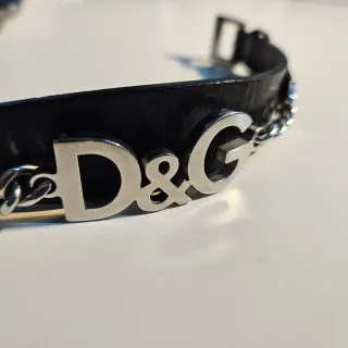 Vendo pulsera original de la firma D&G (Dolce & Gabbana). Es un diseño icónico que combina correa de cuero genuino negro con el logo central y detalles de cadena en acero inoxidable. El metal brilla perfectamente y el logo no tiene arañazos profundos. El cuero tiene un ligero desgaste natural por el uso en la zona lateral (ver fotos), pero por fuera luce impecable. Autenticidad: 100% original (se puede ver el grabado de la marca en el interior del cuero.