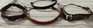 Conjunto de pulseras de cuero con un diseño moderno y versátil. 5€ cada una - Material: Cuero - Estilo: Pulseras de cuero trenzado y liso - Cierre: Ajustable - Detalle: Incluye una pulsera con placa metálica decorada