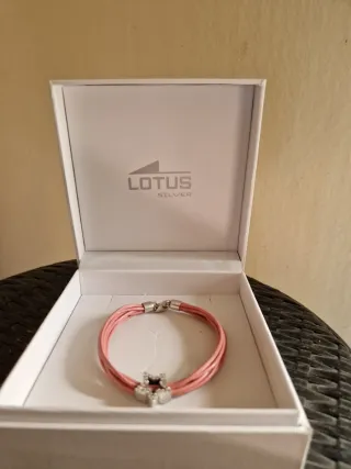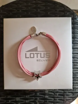 Elegante pulsera de la marca Lotus Silver, con un diseño de cuero rosa y estrella de plata con circonitas. Incluye su caja original.