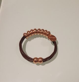 Dos pulseras de Pertegaz.Unaxes de cuero y mide 17 cm.Otra es de bolas en color oro rosa,es elástica. También se venden por separado.