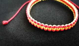 Pulsera hecha en macrame con cordon encerado que imita cuero con los colores del Burgos C F.Es unisex .puedo hacer en cualquier tamaño.de niño tambien