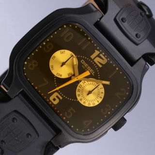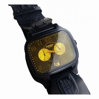 Reloj de pulsera Diesel con un diseño exclusivo, moderno y llamativo. - Esfera cuadrada con detalles dorados. - Correa de cuero negra. - Indicadores de día y fecha.