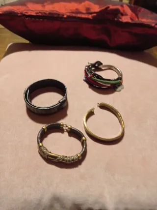 Lote 4 Pulseras Vintage Cuero y Metal