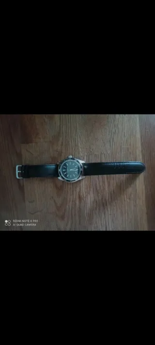 Reloj de pulsera con correa de cuero. - Correa de cuero genuino. - Esfera negra. - Cristal de zafiro. - Resistencia al agua 3 ATM.