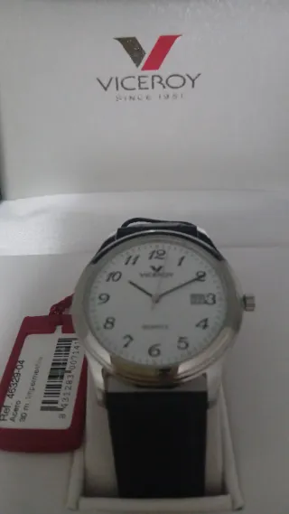 Reloj Viceroy 46329-04 Información del reloj de pulsera marca: Viceroy modelo: VICEROY since-1951 tipo: CABALLERO referencia: 46329-04 Características del reloj Reloj viceroy de caballero. Maquinaria de cuarzo analógica visualización de fecha. Caja de acero. Brazalete de cuero negro Cristal mineral. Como se ve en la garantía, se adquirió en 2010, se guardó y hasta ahora.. Conserva caja, etiqueta, certificado de garantía ...