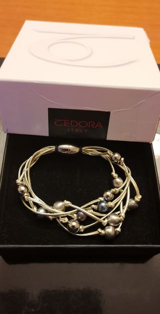 Pulsera cuero gris y cuentas, cierre muy cómodo y magnetico, rn perfecto estado y con caja, es italiana