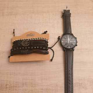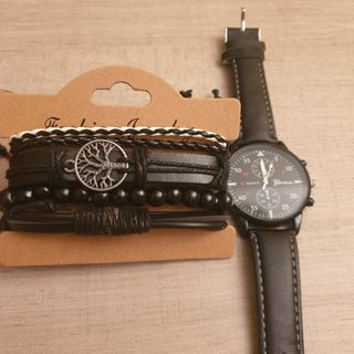 se vende reloj y conjunto de cuatro pulseras de cuero hechas a mano
