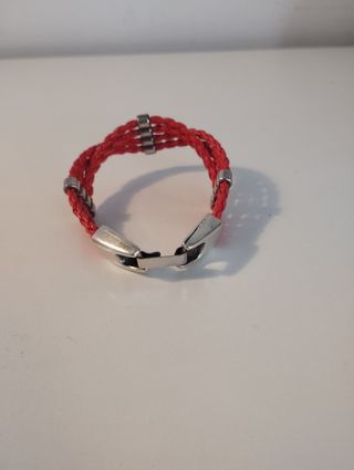 Pulsera cuero trenzado rojo y metal hechas a mano