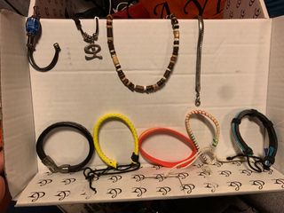 Se vende el lote completo. A excepción de un par de pulseras el resto de artículos no han sido usados nunca, estan nuevos a estrenar. Hay una pulsera de cuero robusta y una pulsera con una piedra de egipto azul. negociable