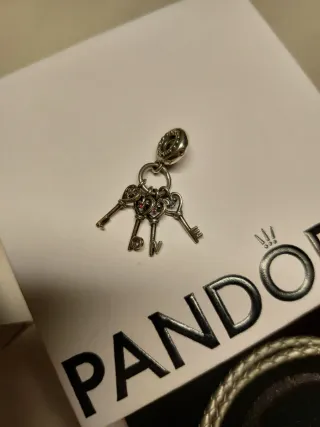 Pulsera de la marca Pandora con libro de autenticidad. Diseño trenzado de cuero gris que sirve de gargantilla y de pulsera. La pulsera cuesta 30€ y los charms 20€ cada uno. Si compras todo hago precio. Charms: Caballo, signo de aries, bola infinitos y llavero love.