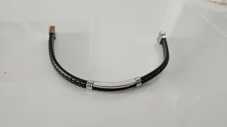 Pulsera de cordón de cuero negro y detalles en acero cromado. Cierre seguro de imán. Nunca se ha usado.