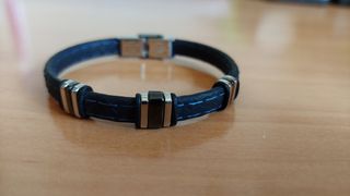 pulsera caballero “Uno de 50”. Elaborada en España con una aleación de metales bañados en plata. Tiene tiempo. Nunca ha sido usada.
