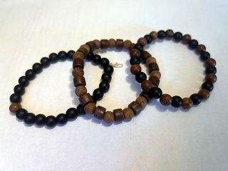 Lote de 3 pulseras de madera elásticas. Van intercaladas con piedras de onyx negro, que a menudo se asocia con cualidades como la fuerza, la protección y la conexión a tierra. Ideales para elevar el estado de ánimo y olvidar fantasías, miedos, paranoias, que nos limitan. Diámetro 19 cm. Nuevas 100%. No se venden por separado. Vendedor serio, mira mis reseñas. También echo el tarot por videollamada, llamada normal o a domicilio. Gran experiencia y siempre buscando una salida. Si te interesa, escríbeme sin compromiso. En Granada capital. Zona Cartuja. Hago envíos. Mira mi perfil para más, o comprar por lotes. Muchas gracias.