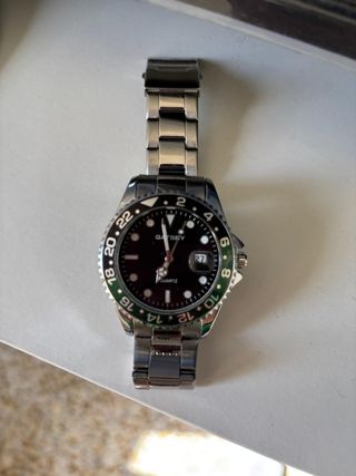 Reloj de pulsera con diseño deportivo y elegante. - Bisel giratorio con marcadores de 24 horas. - Correa de eslabones metálicos. - Ventana de fecha en la esfera.