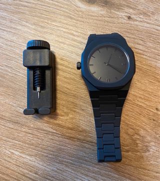 Reloj de pulsera con un diseño moderno y minimalista. - Esfera y correa en acabado mate. - Mecanismo de cuarzo. - Incluye herramienta para ajustar la correa. -tamaño ajustable