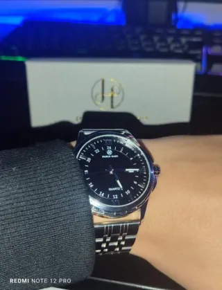 Reloj de pulsera para hombre con diseño elegante. - Esfera de color negro. - Correa de metal plateada. - Indicador de fecha. - Resistencia al agua. Solo hago envios, escucho tu oferta.