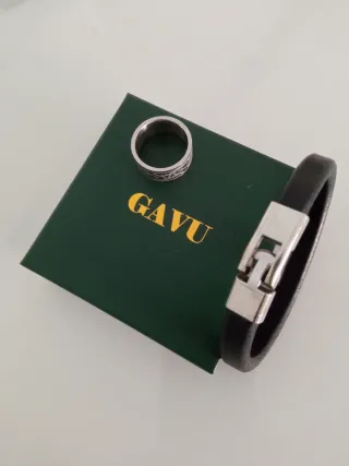 Anillo de acero y brazalete para hombre de caucho y acero (mide 20 cms). De la prestigiosa marca italiana GAVU. Ideal regalo