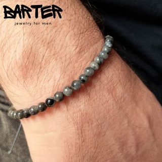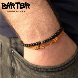 Preciosa pulsera para hombre de la marca Barter. Es elegante y discreta. - Elaborada con cuentas de piedra pulida, de 4 mm de diámetro. - Diseño minimalista. Es ajustable, aunque da bastante talla, si eres corpulento es perfecta para ti. Nueva con etiquetas y embalaje original. Resto de tienda. Envío con GLS y Correos.