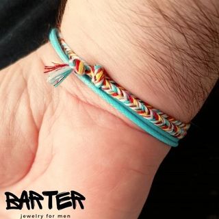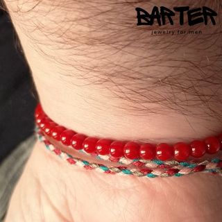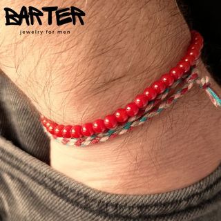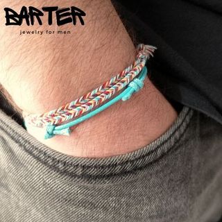 Pulseras de la marca Barter para hombre. - Diseño de algodón trenzado, formando un cordón plano de 3 mm en rojo, gris, blanco y negro. - Cordón de algodón encerado en negro. - Cierre ajustable a diferentes tipos de tallas, hasta XXXL. Perfecto para regalar. Resto de tienda nuevo con etiquetas y embalaje original de la marca. Descuento por lotes. Envío con GLS y Correos.