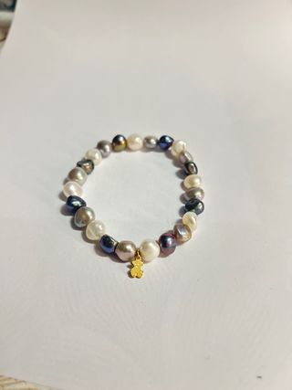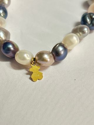 Elegante pulsera de la marca Tous, elaborada con perlas de diversos colores y oro. - Perlas de forma irregular. - Charm de oso Tous en oro.
