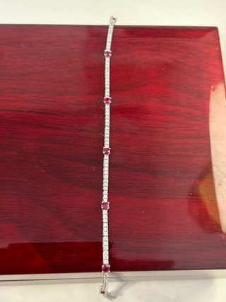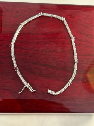 Pulsera tipo riviere de oro blanco de 18 kt con circonitas. Se adjunta certificado. Whatsapp para consultas: 602 04 27 50 Se hacen envíos express asegurados y certificados. El envío llega entre 1-2 días laborables. Se hacen envíos a Contrarembolso. Se entrega en caja de lujo y se empaqueta como regalo si lo necesita. Cualquier pregunta no duden en contactar. En el perfil hay muchas más joyas de todo tipo y época.