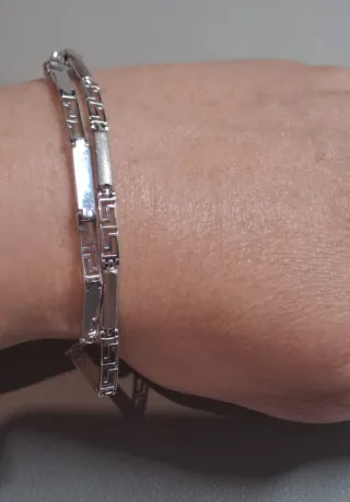 Elegante pulsera de oro blanco de 18 quilates. - Diseño con eslabones. - Acabado pulido y texturizado. - Peso 5,31 gramos