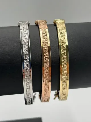 3 Pulseras Rígidas Greca 4mm 18k