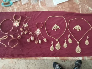 Conjunto de bisutería de estilo elaborado. Precio Especial para mercadillos reventa etc etc Agrupa varios lotes que tengo super rebajados para ahorrar en envios También cambiaría por dos monedas de 2000pesetas,12€,o monedas de cien pesetas franco Cambio solo en mano en Albal Valencia - Incluye collares, pulseras y adornos para dedos. - Diseños intrincados y detallados.