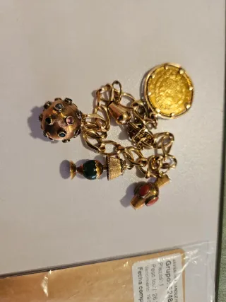 Pulsera de Oro 18 kilates con una moneda de oro de 1823. Puedes ver en la ultima foto una pieza como esta de 46gr el precio que tiene. Esta es de 26 es decir mas de la mitad y esta en menos de la mitad de precio.