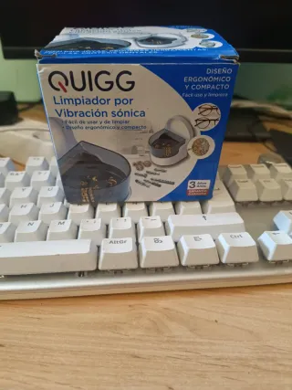 Mantén tus objetos de valor como el primer día! Vendo este limpiador por vibración sónica de la marca QUIGG, diseñado para eliminar la suciedad en rincones difíciles de alcanzar mediante vibraciones de alta frecuencia. Ideal para limpiar: Joyería: Anillos, pendientes, pulseras y collares (oro, plata, etc.). Óptica: Gafas y lentes de sol. Cuidado personal: Prótesis dentales, retenedores o cabezales de afeitado. Otros: Monedas, piezas de relojes y pequeños utensilios. Características principales: Estado: Nuevo (con caja original y manuales). Diseño: Ergonómico, compacto y muy fácil de usar. Alimentación: Funciona con 2 pilas