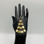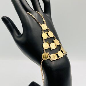 Elegante pulsera chapada en oro con un diseño de monedas.