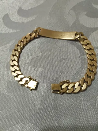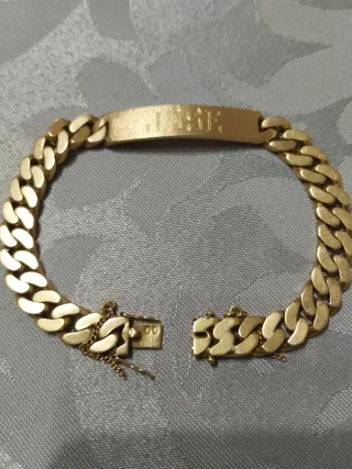 Pulsera de oro con placa grabada
