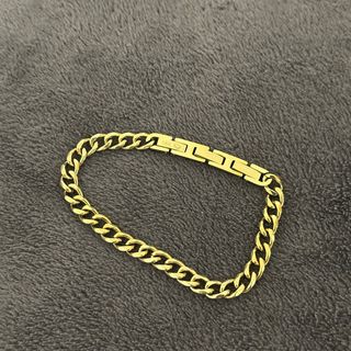 Elegante pulsera de eslabones estilo cubano, con un acabado brillante y detalles en oro laminado . Un accesorio llamativo y moderno. - Diseño de eslabones cubanos. - Acabado en oro laminado - Cierre seguro y resistente. medidas: 21,17,15 cm Largo 6mm Ancho