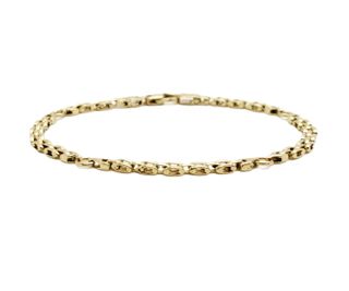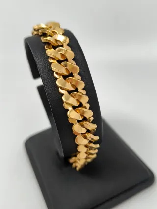 Elegante pulsera de oro macizo de 18 quilates. Un accesorio clásico y duradero. - Diseño de eslabones curvos. - Cierre seguro y resistente. - 22-23 centímetros.