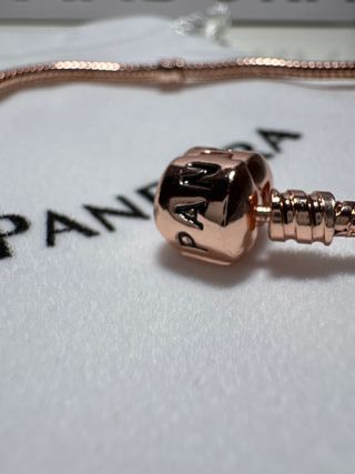 Elegante pulsera de la marca Pandora, con un diseño delicado y brillante. Recubrimieto en oro rosa de 14k. Precio actual en tienda 139,00
