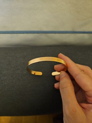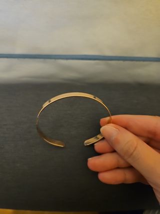 Pulsera de metal de aluminio chapada con oro rosa. Se moldea para ajustarse a la muñeca. No cambia de color ni se oxida (bien cuidada). Me quedan 4. - Ideal como regalo de reyes, navidad, aniversario, o cumpleaños para mujer.