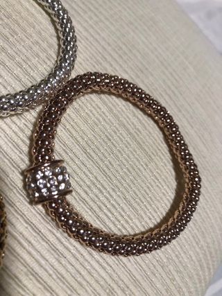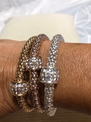 Conjunto de 3 pulseras en colores oro bronce y dorado, cada una de ellas con abalorio de brillantitos