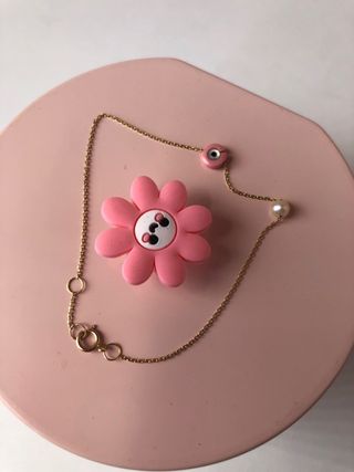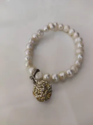 Elegante pulsera de perlas con un charm decorativo. - Perlas de forma irregular. - Charm con diseño floral. - Cierre de mosquetón.
