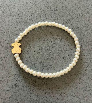 Elegante pulsera de perlas con un charm de oso de la marca Tous. - Perlas de forma irregular. - Charm de oso dorado. - Diseño elástico para mayor comodidad.
