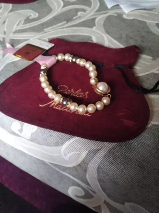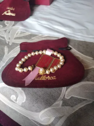 Elegante pulsera de perlas de Mallorca, presentada en su estuche original. 18centimetros - Perlas de aspecto natural. - Cierre y detalles en oro. - Incluye estuche de regalo.