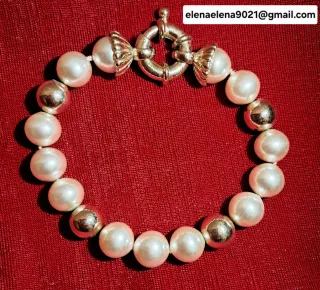 Elegante pulsera con perlas y detalles dorados. - Cierre de mosquetón. - Diseño clásico y versátil.