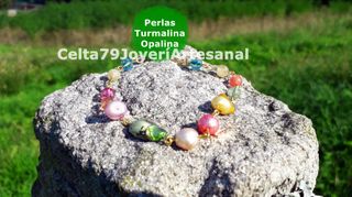 Pulsera Perlas Turmalina Opalina Celta79 Artesanal