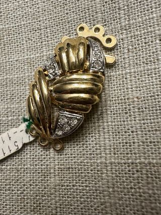 Cierre de collar vintage de plata de ley 925 con baño de oro y circonitas para collares y pulseras de perlas u otras piedras de 3 hilos. Este elegante cierre va provisto de un gancho (anzuelo) que hace click al final para garantizar la seguridad de la pieza. Medida: 30mm largo x 17mm ancho