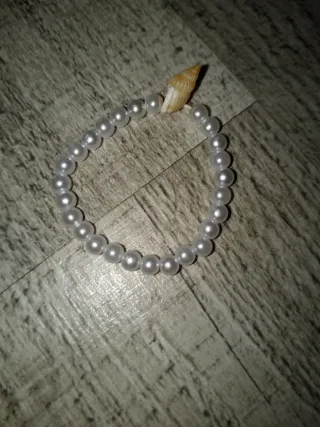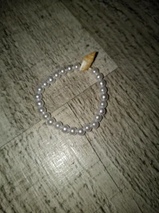 Bonita pulsera adornada con perlas y una caracola. - Diseño único. - Cierre elástico.