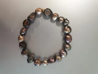 Elegante pulsera adornada con perlas barrocas de tonos oscuros y brillantes. - Perlas de forma irregular.